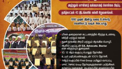 தமிழ்நாட்டில் நீங்கள் விரும்பும் பகுதியில் உங்கள் வீட்டு ஆண், பெண் குழந்தைகள் ஈருலக கல்வியை கற்று சிறந்த ஆளுமைகளாக வளர… அதாயிகல்விக்குழுமம் அதாயிஅரபிக்கல்லூரி முதலும் முன்னோடியும் –…