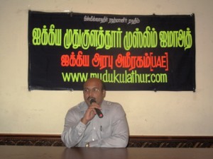பொதுச்செயலாளர் முதுவை ஹிதாயத் வரவேற்புரை நிகழ்த்தினார். கௌரவ ஆலோசகர் எஸ். சம்சுதீன் துவக்கவுரை நிகழ்த்தினார்.