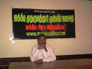 நிகழ்வில் பங்கேற்ற கலைராஜன் துபாயில் முதுகுளத்தூர் மக்கள் அனைவரையும் ஒரே இடத்தில் சந்திப்பது மிகுந்த மகிழ்வினை அளிப்பதாக தெரிவித்தார்.