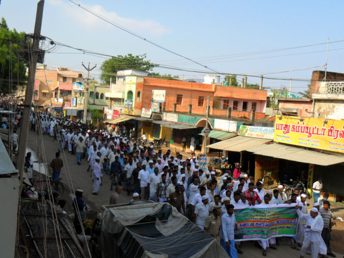 இதில் பெரிய பள்ளிவாசல், திடல், முஸ்தபாபுரம் உள்ளிட்ட அனைத்து ஜமாஅத்தினரும், இந்திய யூனியன் முஸ்லிம் லீக், தமுமுக உள்ளிட்ட பல்வேறு அமைப்பினரும் பங்கேற்றனர்.