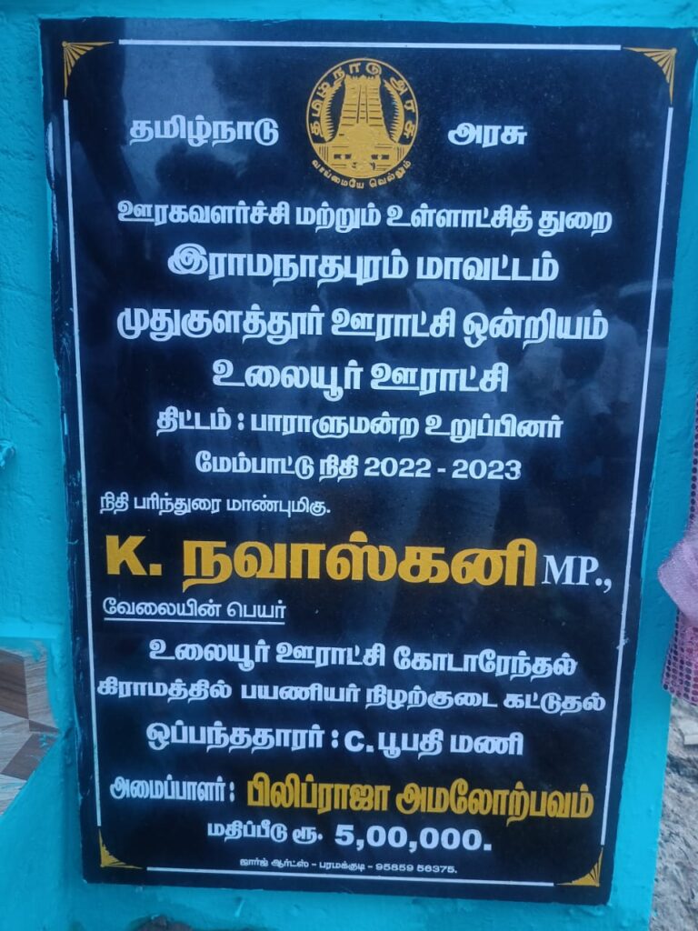 கோடாரேந்தல் கிராமத்தில் பயணியர் நிழற்குடை – கே நவாஸ்கனி எம்பி திறந்து வைத்தார்