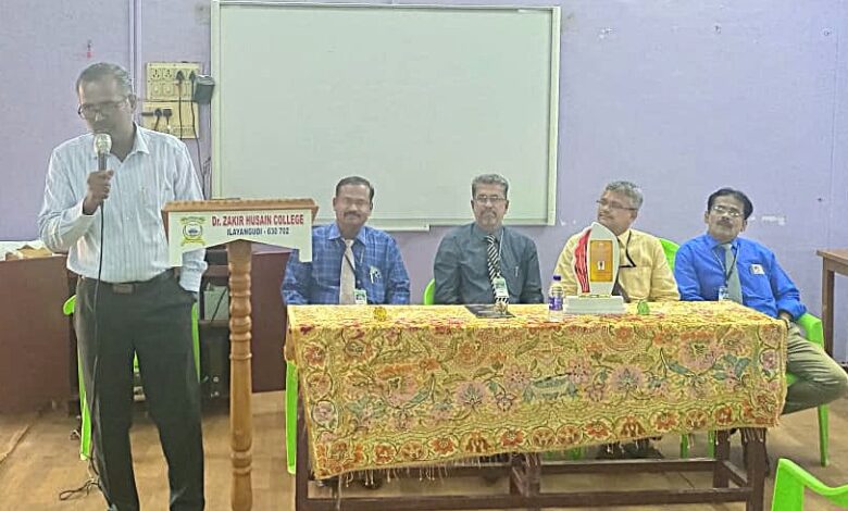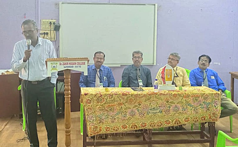 சிவகங்கை மாவட்டம், இளையான்குடி, டாக்டர் சாகிர் உசேன் கல்லூரி, முதுகலை மற்றும் ஆராய்ச்சி வணிகவியல்துறை சார்பாக 31.12.2024 அன்று பரஸ்பர நிதி முதலீடு மூலம் செல்வம் உருவாக்கல் என்னும் தலைப்பில் கருத்தரங்கு நடைபெற்றது. துறைத்தலைவர் நைனா முகம்மது வரவேற்றார். கல்லூரி முதல்வர் ஜபருல்லாகான் தலைமையுரையாற்றினார்.