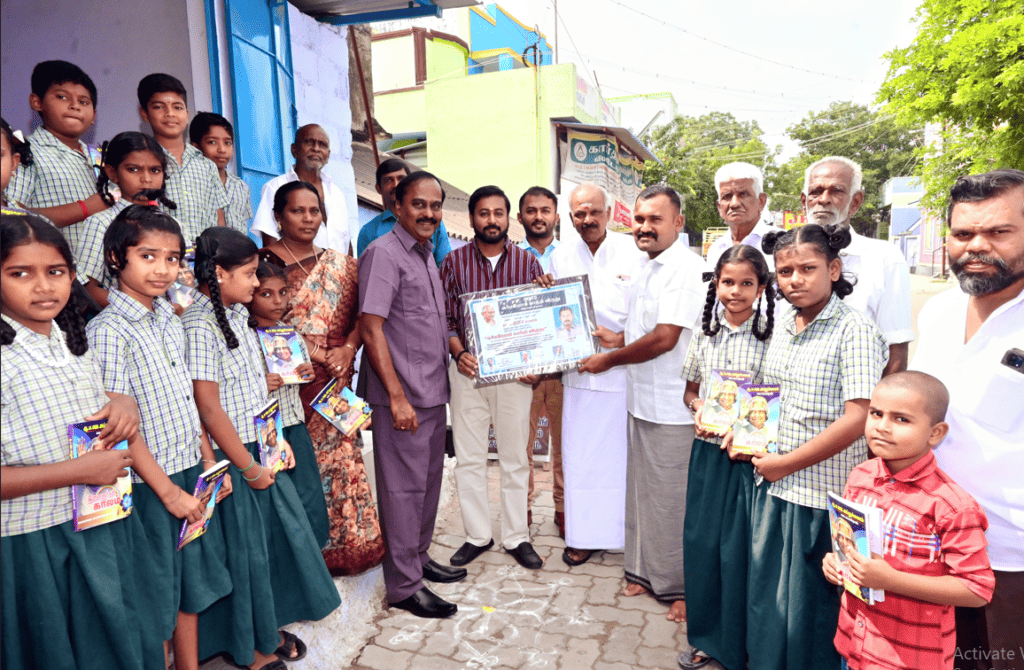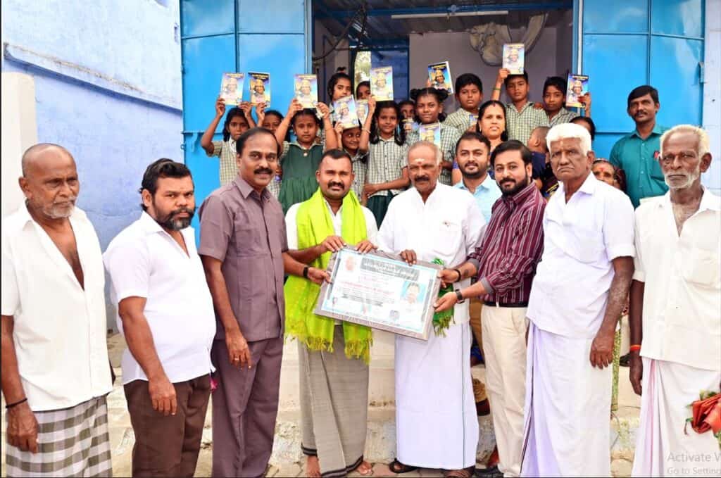 தினமலர் நிர்வாக இயக்குனர் தினேஷ், செங்கோட்டை காந்தியவாதி விவேகானந்தன், சமூக நல ஆர்வலர் திருமாறன் நேர்மைக்கான 2025 கர்மயோகி காந்தி விருதை முத்துக்குமாருக்கு வழங்கினர்.