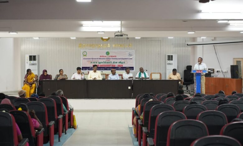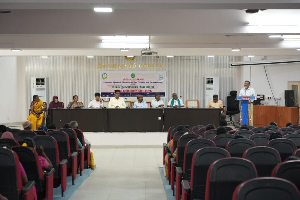 இராமநாதபுரம், மார்ச் 16 – இராமநாதபுரத்தில் உலக நுகர்வோர் தின விழா மற்றும் பாதுகாப்பான, ஊட்டச்சத்துமிக்க உணவு அனைத்து நுகர்வோருக்குமான அடிப்படை உரிமை கருத்தரங்கு கிரியேட் அமைப்பு சார்பில் நடந்தது.