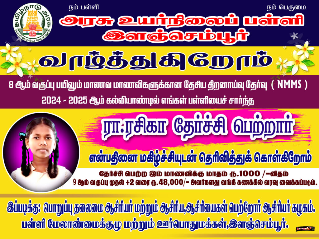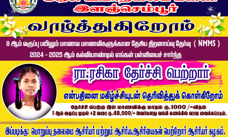 இவர் 2024-2025 ஆம் கல்வி ஆண்டில் நடந்த தேசிய திறனாய்வு தேர்வில் பங்கேற்று தேர்ச்சி பெற்றுள்ளார்.