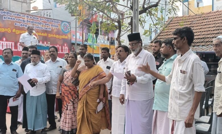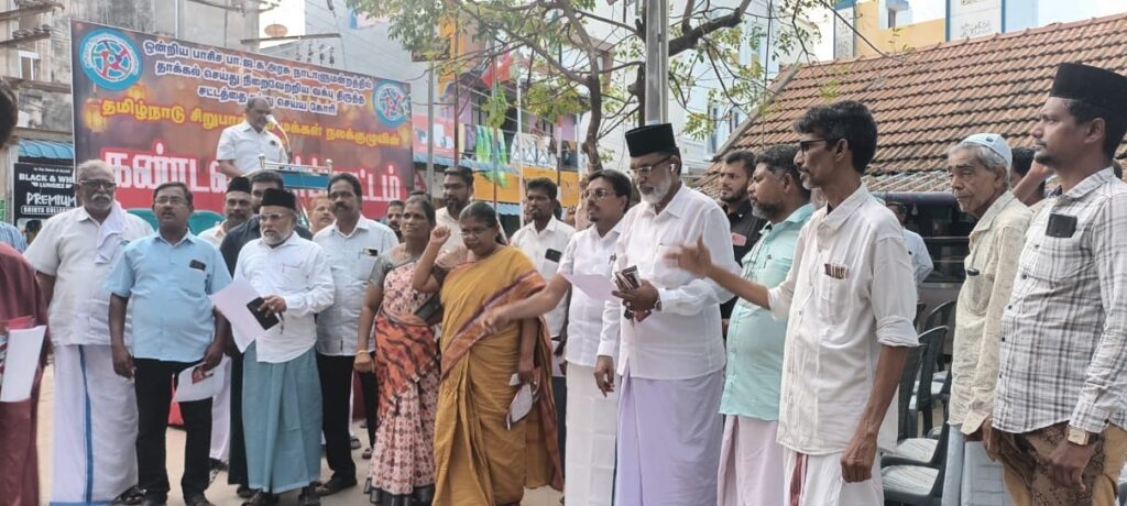 கீழக்கரையில் தமிழ்நாடு சிறுபான்மை மக்கள் நல குழுவின் சார்பில் கண்டன ஆர்ப்பாட்டம்