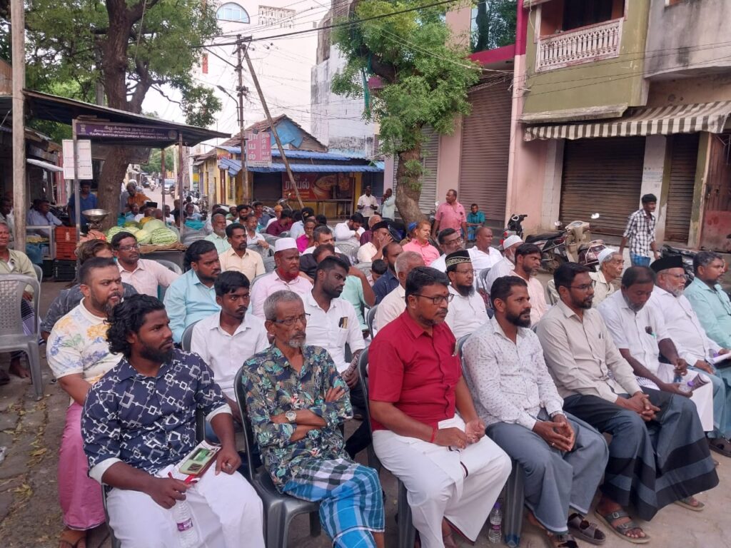 இராமநாதபுரம் மாவட்டம் கீழக்கரை முஸ்லிம் பஜாரில் மத்திய அரசின் வக்ப்பு திருத்த சட்டத்தை கண்டித்து தமிழ்நாடு சிறுபான்மை மக்கள் நல குழுவின் சார்பில் கண்டன ஆர்ப்பாட்டம் தாலுகா ஒருங்கிணைப்பாளர் மாரியப்பன் தலைமையில் நடைபெற்றது. இதில் சிறப்பு அழைப்பாளராக திண்டுக்கல் முன்னாள் சட்டமன்ற உறுப்பினர் பாலபாரதி மற்றும் வக்பு சொத்துக்கள் பாதுகாப்பு மற்றும் கண்காணிப்பு கமிட்டி மாநில ஒருங்கிணைப்பாளர் தூத்துக்குடி சம்சுதீன் ஆகியோர் கலந்து கொண்டு உரையாற்றினார். மேலும் தமிழ்நாடு சிறுபான்மை மக்கள் நலக்குழு மாவட்ட செயலாளர் வெங்கடேஷ் கீழக்கரை வட்டார ஜமாத்துல் உலமா சபை தலைவர் அப்பாஸ் அலி மண்ப தமிழக மக்கள் ஒற்றுமை மேடை ராஜ்குமார் கீழக்கரை நாலாவது வார்டு நகர் மன்ற உறுப்பினர் சூரியகலா தமிழ்நாடு சிறுபான்மை மக்கள் நலக்குழு மாவட்ட குழு உறுப்பினர் முகமது ஃபரூஸ் தமிழ்நாடு சிறுபான்மை மக்கள் நலக்குழு மாவட்ட குழு உறுப்பினர் சீனி முகமது தம்பி ஆகியோர் கலந்து கொண்டு கண்டன கோஷங்களை எழுப்பினர். தமிழ்நாடு சிறுபான்மை மக்கள் நலக்குழு மாவட்ட குழு உறுப்பினர் ஷாம் விக்டர் நன்றி உரையாற்றினார்.