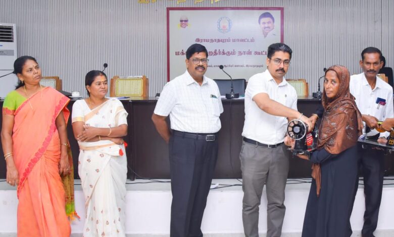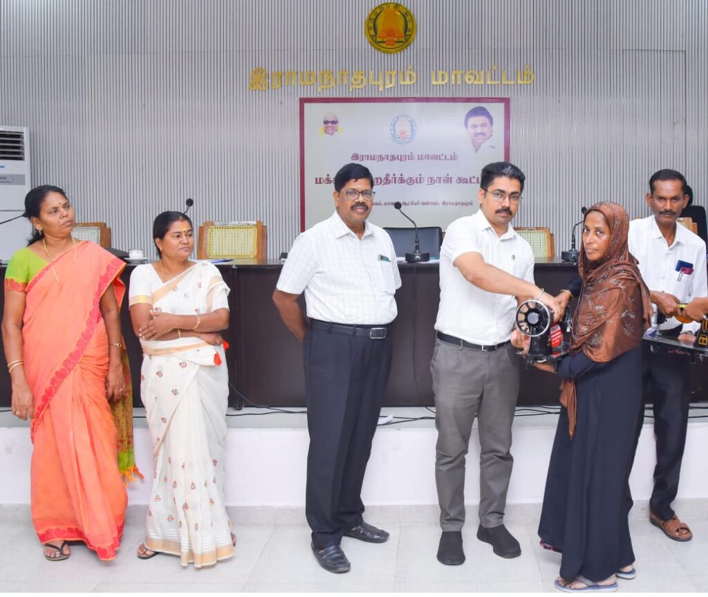 ராமநாதபுரம் மாவட்டம் மாவட்ட ஆட்சியர் அலுவலக கூட்டரங்கில் மாவட்ட ஆட்சித் தலைவர் சிம்ரன் ஜுத் சிங்காலோன் மக்கள் குறைதீர்க்கும் நாள் கூட்டத்தில் பயனாளிகளுக்கு அரசு நலத்திட்ட உதவிகளை வழங்கினார். உடன் மாவட்ட வருவாய் அலுவலர் கோவிந்தராஜலு உள்ளார்.