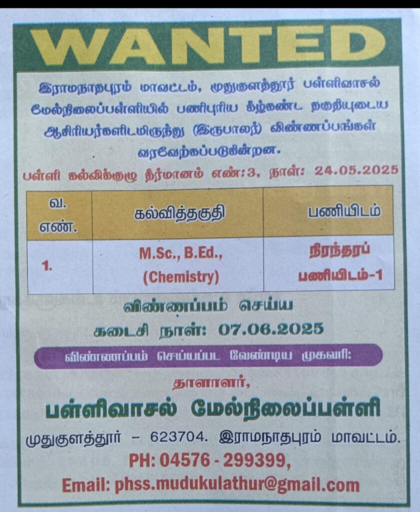 Home/இராமநாதபுரம்/ஆசிரியர் தேவை இராமநாதபுரம்முதுகுளத்தூர் ஆசிரியர் தேவை முதுகுளத்தூர்June 5, 20250 150 Less than a minute Post Views: 246 Tagsஆசிரியர் தேவை முதுகுளத்தூர்June 5, 20250 150 Less than a minute Facebook X LinkedIn Tumblr Pinterest Reddit VKontakte Share via Email Print