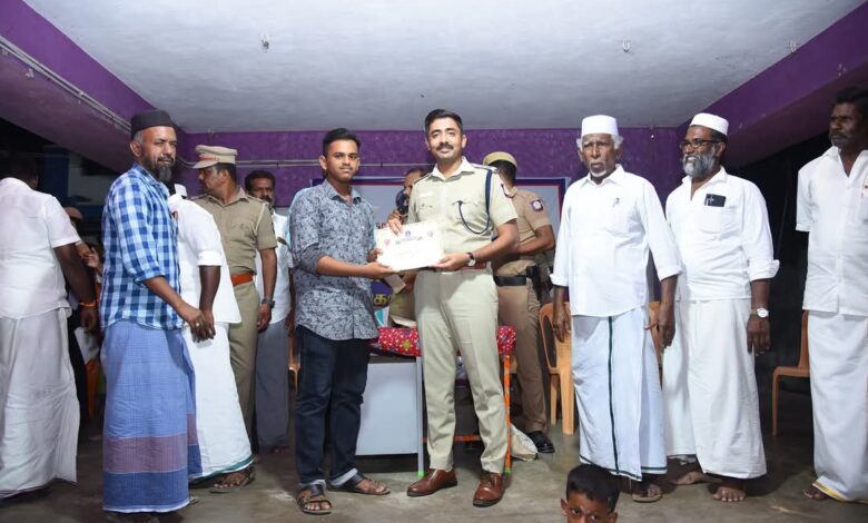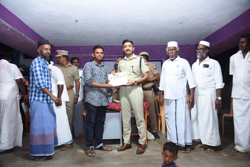 இந்த சந்திப்பின் போது, 11-ம் வகுப்பு பொதுத்தேர்வில் மாவட்ட அளவில் முதலிடம் பிடித்த மாணவன் முகமது இர்பான் அலிக்கு சான்றிதழ் வழங்கி பாராட்டுகளை தெரிவித்தார்கள். மேலும், பாதுகாப்பு தொடர்பான பிரச்சினைகள் மற்றும் மக்கள் எதிர்கொள்ளும் குறைகளை கவனமாக கேட்டு, அவற்றின் தீர்வுக்கான வழிமுறைகள் குறித்து பரிசீலனை செய்து, சம்பந்தப்பட்ட காவல் அதிகாரிகளுக்கு தேவையான வழிகாட்டு ஆலோசனைகளை வழங்கினார்.