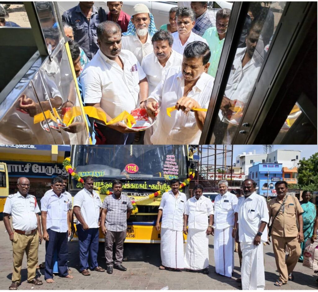 இராமநாதபுரம் மாவட்டம் முதுகுளத்தூர் பேருந்து நிலையத்தில் புதிய பேருந்து சேவை துவக்க விழா நடைபெற்றது. தமிழக முதல்வர் மு.க. ஸ்டாலின் அவர்களின் வழிகாட்டுதலின்படி, முதுகுளத்தூர் சட்டமன்ற உறுப்பினர், தமிழக வனத்துறை மற்றும் கதர்கிராம தொழில்கள் வாரியத்துறைஅமைச்சர்ஆர்,எஸ், ராஜகண்ணப்பன் அவர்களிடம் பொது மக்கள் வைத்த கோரிக்கையை ஏற்று முதுகுளத்தூர் முதல் மதுரை வரை பழைய வழித்தடத்தில் புதிய பேருந்து சேவையை முதுகுளத்தூர் பேரூராட்சி சேர்மன் ஷாஜகான் அவர்கள் துவங்கி வைத்தார். இதில் போக்குவரத்து கழக அதிகாரிகள், திமுக தொழிற்சங்க நிர்வாகிகள் கலந்து கொண்டனர்.