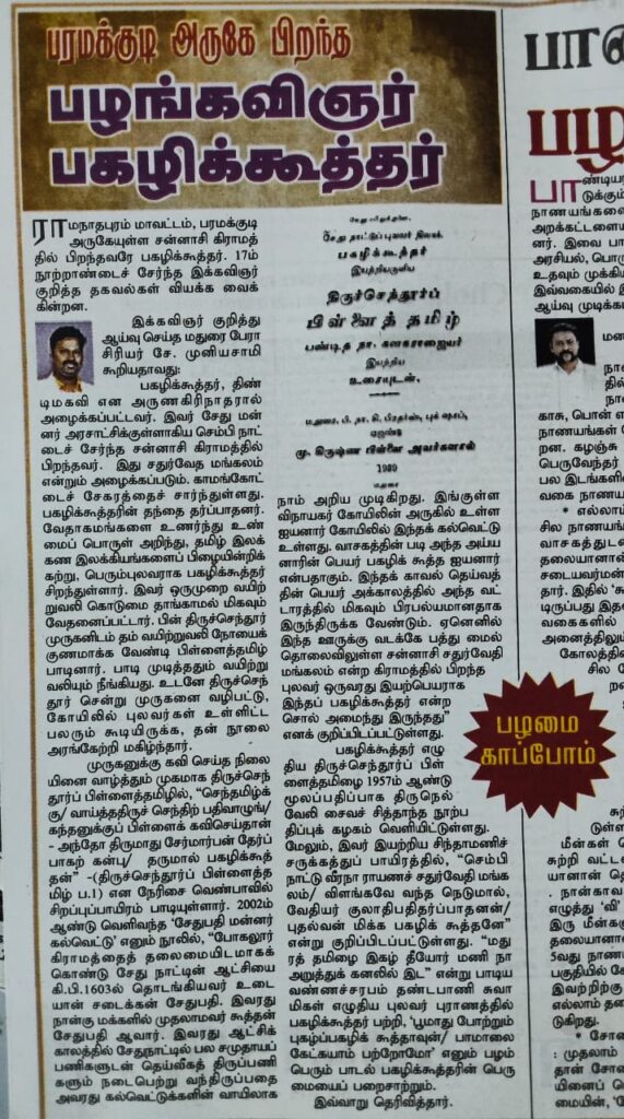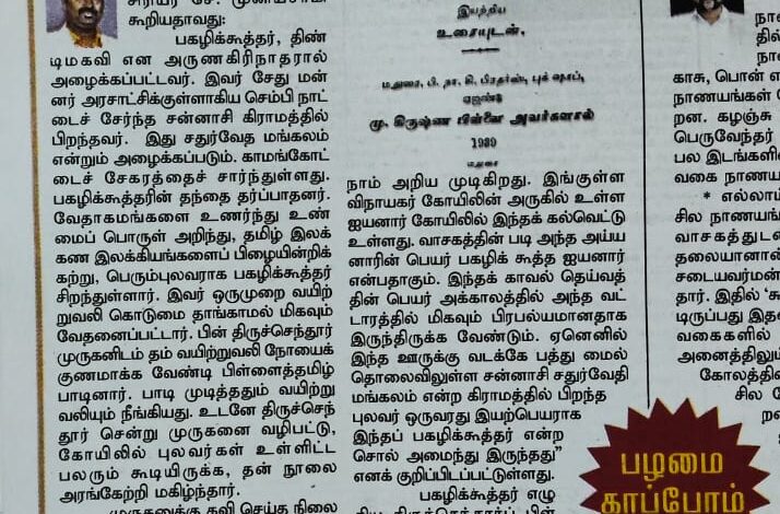 பகழிக்கூத்தர் பற்றிய கல்வெட்டுச் செய்தி