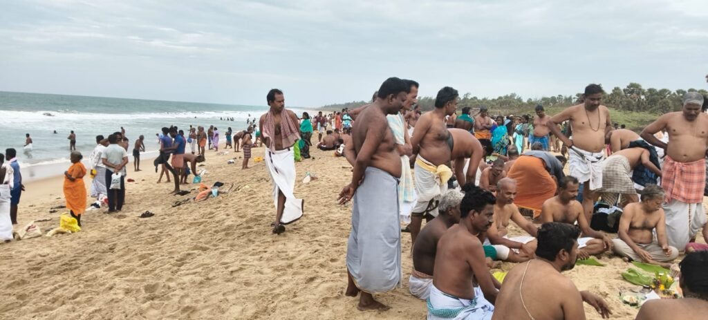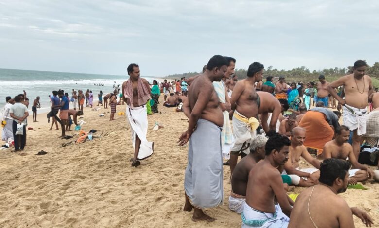ஆடி அமாவாசை முன்னிட்டு மாரியூர் கடற்கரையில் முன்னோருக்கு தர்ப்பணம் செய்ய குவிந்த மக்கள் கூட்டம்