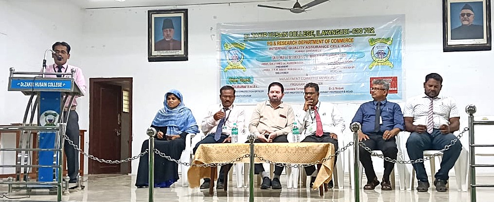 முதுகலை வணிகவியல்துறை மற்றும் கல்லூரி உள் தர உறுதி செல் இணைந்து 26.07.2025 அன்று போட்டித்தேர்வுகளை எளிதில் எதிர்கொள்ளும் முறைகள் குறித்த ஒருநாள் கருத்தரங்கு நடைபெற்றது. துறைத்தலைவர் நாசர் வரவேற்றார். கல்லூரி முதல்வர் ஜபருல்லாகான் தலைமையுரையாற்றினார். உதவிப்பேராசிரியர் சம்சுதீன் இப்ராஹிம் சிறப்பு விருந்தினரை அறிமுகம் செய்தார். சிறப்பு விருந்தினராக இராமநாதபுரம், மாவட்ட குழந்தைகள் பாதுகாப்பு அதிகாரி, சிவகுமார் கலந்துகொண்டு போட்டித்தேர்வுகளின் வகைகள் மற்றும் போட்டித்தேர்வுகளில் எளிதில் வெற்றி பெற மேற்கொள்ளவேண்டிய வழிமுறைகள் குறித்தும் பேசினார். நிகழ்வில் வணிகவியல் துறை மற்றும் அனைத்து அறிவியல் துறை மாணவ-மாணவிகள் கலந்துகொண்டு பயன்பெற்றனர். உதவிபேராசிரியை முஹம்மது பாத்திமா நன்றி கூறினார்.