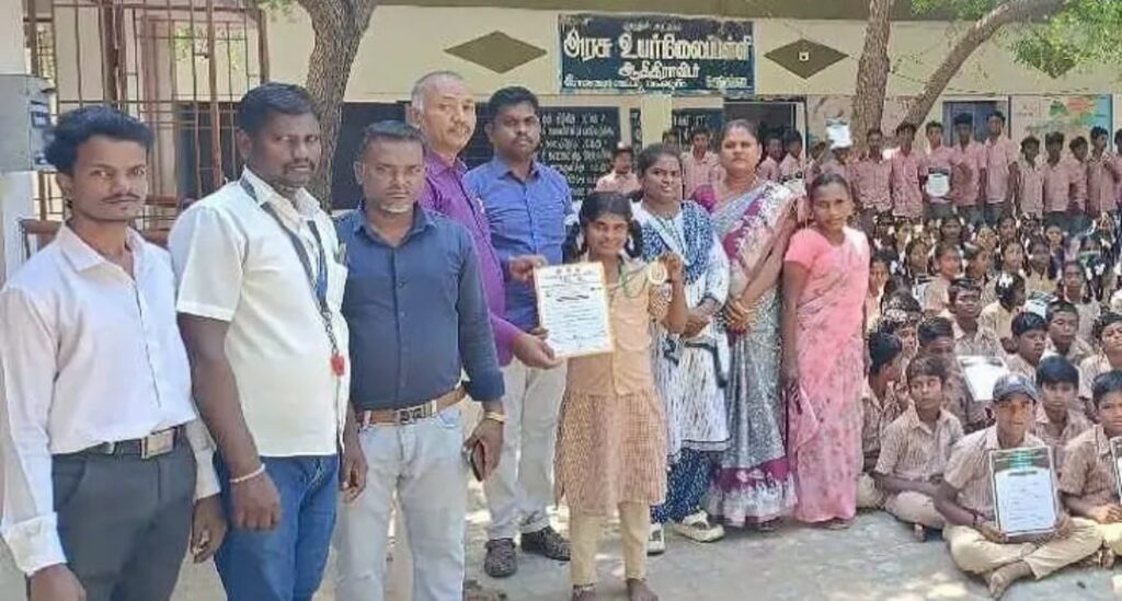 இராமநாதபுரம் மாவட்டம் கமுதி அருகே செங்கப்படை அரசு உயர்நிலைப் பள்ளியில் படித்து வரும் 7ம் வகுப்பு மாணவி நிவேதா ஸ்ரீ, திருவண்ணாமலையில் நடைபெற்ற மாநில அளவிலான ஜூடோ சாம்பியன்ஷிப் போட்டியில் பங்கேற்று 2ஆம் இடம் பெற்று சாதனை படைத்துள்ளார். சாதனை படைத்த மாணவிக்கு நேற்று பள்ளி வளாகத்தில் பாராட்டு விழா நடைபெற்றது. இதில் மாணவியை பாராட்டி ஆசிரியர்கள் தலைமை ஆசிரியர் தலைமையில் சிறப்பு பரிசுகள் வழங்கினார்.