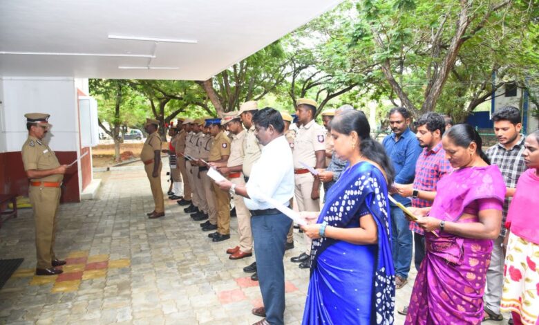 ராமநாதபுரம் சரக காவல்துறை துணைத் தலைவர் முனைவர் மூர்த்தி IPSமுன்னிலையில் காவல்துறையினர் மற்றும் அனைத்து பணியாளர்களும் போதைப் பழக்கத்திற்கு எதிரான உறுதிமொழி எடுத்துக் கொண்டனர்.