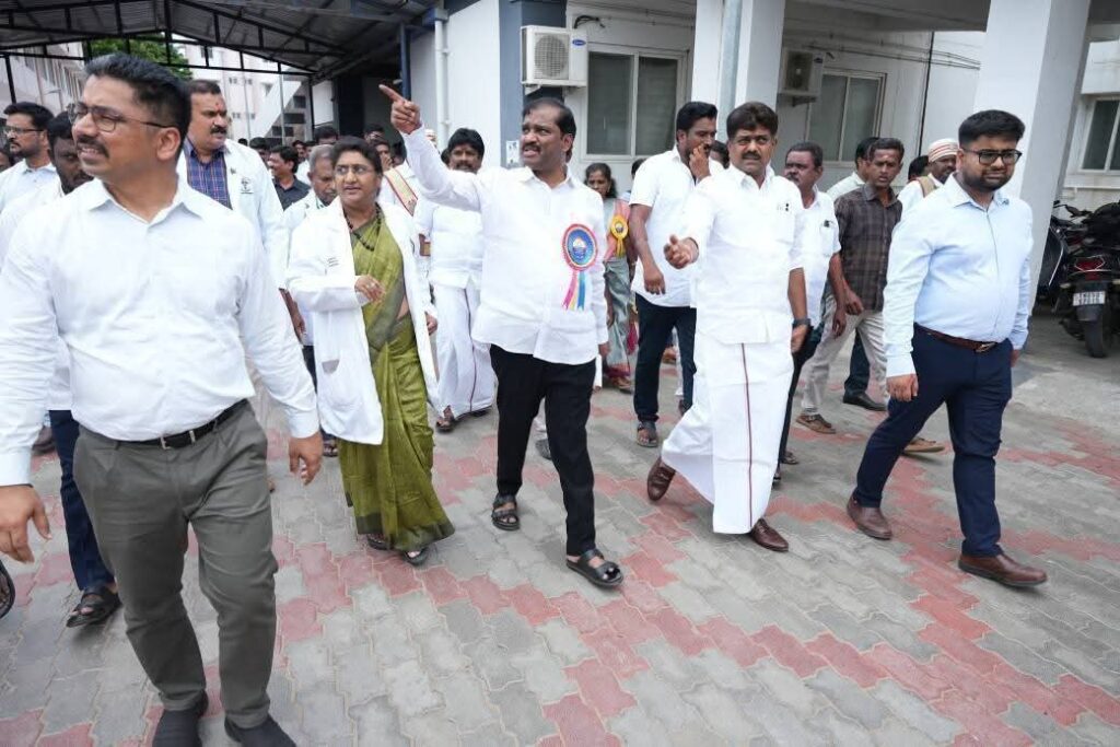 மேலும்மருத்துவமனை வளாகத்தில் ஓரிடத்தில் கழிவு நீர் குழாய் உடைந்து மருத்துவமனை முழுவதும் துர்நாற்றம் வீசும் நிலை இருப்பதனை கண்டறிந்து அதனை உடனடியாக சரி செய்து குழுவிற்கு புகைப்படத்துடன் கூடிய அறிக்கையை சமர்ப்பிக்க உத்தரவிட்டார்.