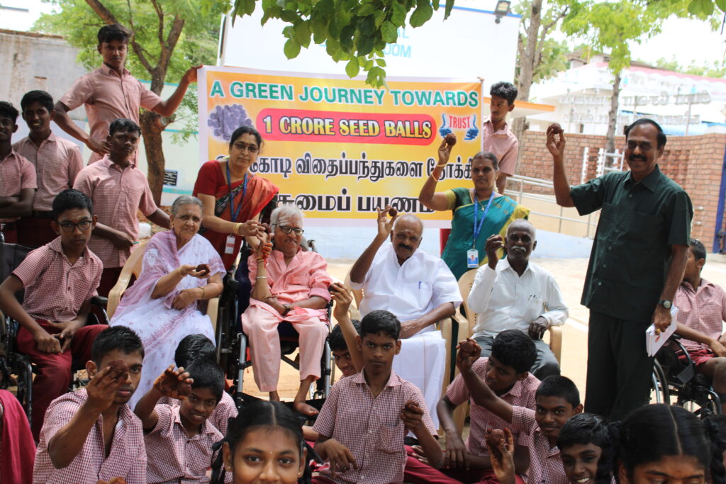 மாற்றுத்திறனாளி குழந்தைகள் மட்டற்ற மகிழ்ச்சியுடன் விதைப்பந்துகளை வேகமாக தயாரித்தனர். விரல்களே இல்லாத குழந்தைகள், சராசரி மனிதரைப் போல சரிவர கைகள் இயங்க முடியாத குழந்தைகள், ஆட்டிசம் குழந்தைகள் மண் உருண்டைகளில் விஞ்ஞான கண்ணோட்டத்துடன் விதைகளை செருகி விதைப்பந்துகளை ஆர்வத்துடன் தயாரித்தனர்.