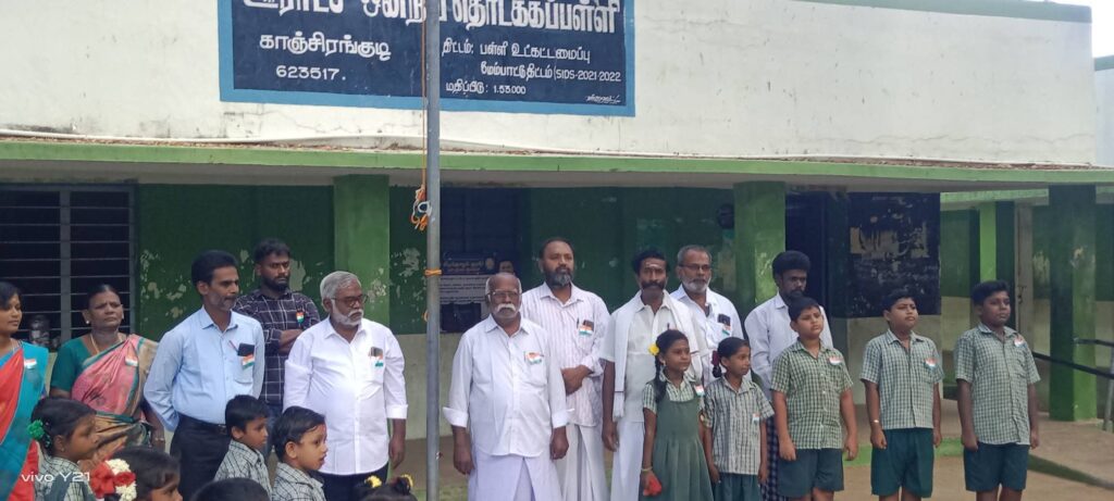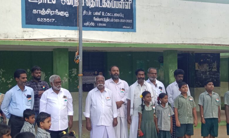 79-வது சுதந்திர தின விழாவை முன்னிட்டு காஞ்சிரங்குடி அரசு உயர்நிலைப்பள்ளியில் காஞ்சிரங்குடி முன்னாள் ஊராட்சி மன்ற தலைவர் முனியசாமி தேசிய கொடியினை ஏற்றி வைத்து மாணவ செல்வங்களுக்கு இனிப்புகள் வழங்கினார்கள்