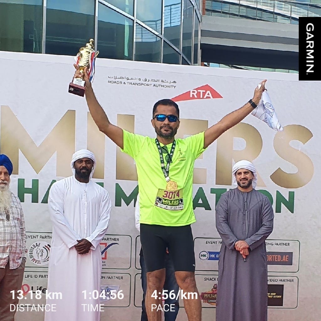 அமீரகத்தில் அபுதாபி அட்நாக் நிறுவனம் நடத்திய மாரத்தான் போட்டியில் மூன்று முறையும், துபாய் மாரத்தான் போட்டியில் இரண்டு முறையும், ராசல் கைமா, புஜேரா, துபாய், அஜ்மான், ஷார்ஜா ஆகிய இடங்களில் நடந்த அரை மாரத்தான் போட்டிகளிலும் பங்கேற்றுள்ளார்.