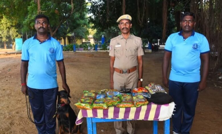 இராமநாதபுரம் மாவட்ட காவல் கண்காணிப்பாளர் சந்தீஷ்,IPS., உத்தரவின் பேரில் புகையிலைப் பொருட்களுக்கு எதிரான தீவிர சோதனையில் இராமநாதபுரம் ரயில்வே நிலையத்தில் மோப்ப நாய் “ஆரா”வின் உதவியுடன் ரயிலில் சோதனை செய்த போது 4.700 கிலோ புகையிலைப் பொருட்கள் பறிமுதல் செய்யப்பட்டன.