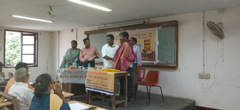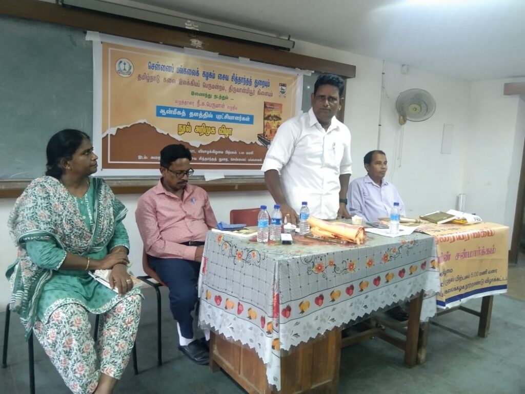 சென்னைப் பல்கலைக்கழகத்தில் சைவ சித்தாந்தத் துறை சார்பில் சிறப்பான முறையில் ஆன்மிகத் தளத்தில் புரட்சியாளர்கள் நூல் அறிமுக விழாபேராசிரியர் பெ அர்த்தனாரீஸ்வரர் தலைமையில் நடைபெற்றது.