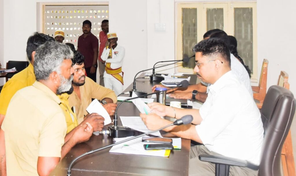 ராமநாதபுரம் மாவட்ட ஆட்சியர் அலுவலக கூட்டரங்கில் மாவட்ட ஆட்சித் தலைவர் சிம்ரன்ஜுத் சிங் காலோன் மக்கள் குறைதீர்க்கும் நாள் கூட்டத்தில் பொதுமக்களிடம் மனுக்கள் பெற்று குறைகளை கேட்ட றிந்தார். உடன் மாவட்ட வருவாய் அலுவலர் கோவிந்தராஜலு உள்ளார்.