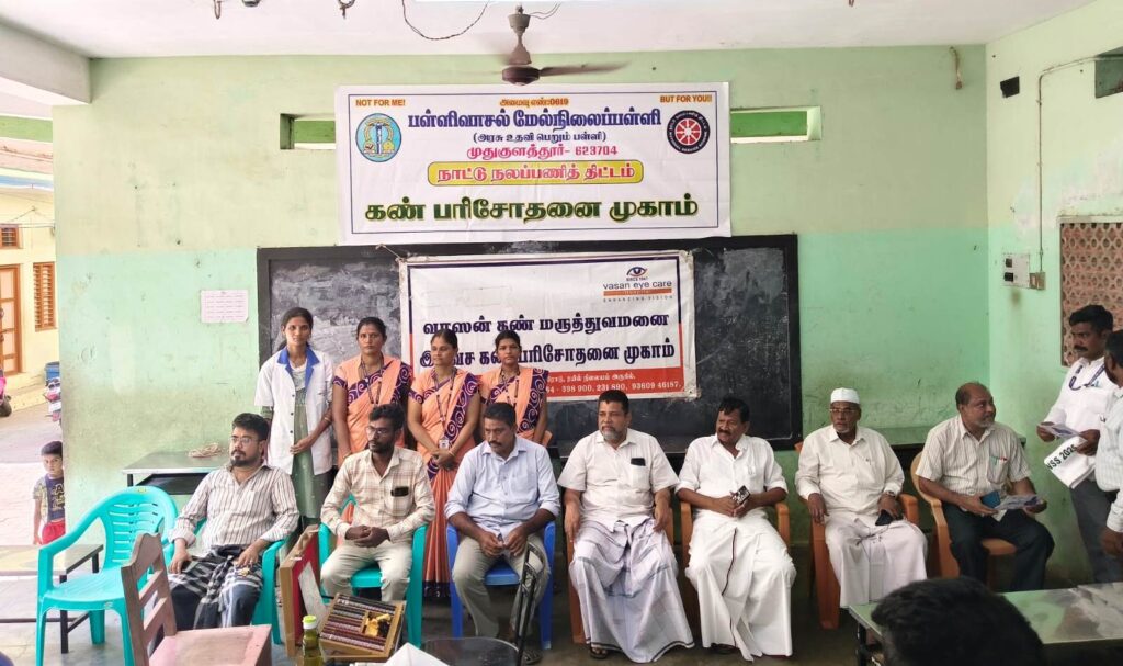 பள்ளிவாசல் மேல்நிலைப்பள்ளியின் நாட்டு நலப்பணித்திட்டம் சார்பில் 26.09.2025 முதல் 02.10.2025 வரை 7 நாள் சிறப்பு முகாம் மு.வாகைக்குளம் கிராமத்தில் நடைபெற்று வருகின்றது. இரண்டாம் நாள் நிகழ்வான இன்று 27.09.2025 பள்ளிவாசல் மேல்நிலைப்பள்ள்ளி நாட்டுநலப்பணித்திட்டம் மற்றும் வாசன் கண் மருத்துவமனை பரமக்குடி இனைந்து மாபெரும் இலவச கண் பரிசோதனை முகாம், பள்ளிவாசல் மேல்நிலைப்பள்ளி வளாகத்தில் நடைபெற்றது. இந்த விழாவிற்கு பெரிய பள்ளிவாசல் ஜமாத் தலைவர் சீ.காதர் முகைதீன் அவர்கள் தலைமை வகித்தார், பள்ளிவாசல் மேல்நிலைப்பள்ளியின் தாளாளர் ஷா. ஜஹாங்கீர் அவர்கள் வரவேற்புரை ஆற்றினார்கள். டாக்டர் R.K.பிரகதி மருத்துவர் வாசன் கண் மருத்துவமனை பரமக்குடி அவர்கள், கல்விக் குழு தலைவர் காஜா நஜுமுதீன் அவர்கள், பள்ளிவாசல் தொடக்கப்பள்ளி தாளாளர் காஜா கமருதீன் அவர்கள், பள்ளிவாசல் நர்சரி பள்ளி தாளாளர் அ.பாசில் அமீன் அவர்கள், பள்ளியின் ஆடிட்டர் இக்பால் ஹி.இ.வா சங்கத்தலைவர் அப்துல் அஜீஸ், உடற்கலவி ஆசிரியர் கமால் பாட்சா, ஆசிரியர் கண்ணன், அலுவலக பணியாளர் தாகிர் ஹுசைன், சம்சுதீன் மற்றும் ஜமாத்தார்கள் ஆகியோர் முன்னிலை வகித்தனர். இந்நிகழ்வில் முதுகுளத்தூர் பேரூராட்சி மன்ற தலைவர் அ.ஷாஜஹான் அவர்கள் கண் சிகிச்சை முகாமினை துவக்கி வைத்தார்கள். இதில் அணைத்து பொதுமக்களும் கலந்துகொண்டு பயன் அடைந்தனர். மேலும் வாகைக்குளம் கிராம மக்கள், மாணவர்கள் ஆசிரியர்கள், ஆசிரியைகள், அலுவலக ஊழியர்கள் பத்திரிக்கை நண்பர்கள், பள்ளி நிர்வாகிகள், ஜமாத்தார்கள், முக்கியஸ்தர்கள் அனைவரும் பெருந்திரளாக கலந்து கொண்டனர். இதில் பள்ளிவாசல் மேல்நிலைப்பள்ளியின் தலைமை ஆசிரியர் காஜா நிஜாமுதீன் குரைசி நன்றியுரை நவின்றார்கள். இந்நிகழ்ச்சியினை நாட்டு நலப்பணித்திட்ட அலுவலர் நூருல் அமீன் அவர்கள் ஒருங்கிணைத்தார்கள்.