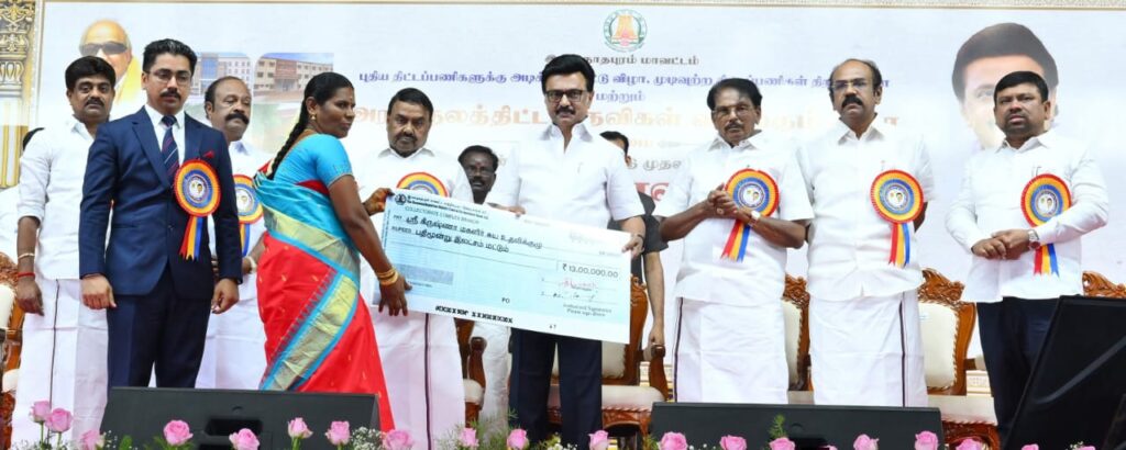 மாண்புமிகு தமிழ்நாடு முதலமைச்சர் திரு. மு.க.ஸ்டாலின் அவர்கள் இன்று (3.10.2025) இராமநாதபுரத்தில் நடைபெற்ற அரசு விழாவில், பல்வேறு துறைகளின் சார்பில் 50,752 பயனாளிகளுக்கு 426 கோடியே 83 இலட்சம் ரூபாய் மதிப்பிலான அரசு நலத்திட்ட உதவிகள் வழங்கிய நிகழ்வில், உணவுப் பொருள் வழங்கல் மற்றும் நுகர்வோர் பாதுகாப்புத் துறை சார்பில் பயனாளிகளுக்கு புதிய குடும்ப அட்டைகளை வழங்கினார். இந்நிகழ்ச்சியில், மாண்புமிகு வருவாய் மற்றும் பேரிடர் மேலாண்மைத் துறை அமைச்சர் திரு. கே.கே.எஸ்.எஸ்.ஆர். ராமச்சந்திரன், மாண்புமிகு நிதி, சுற்றுச்சூழல் மற்றும் காலநிலை மாற்றத் துறை அமைச்சர் திரு. தங்கம் தென்னரசு, மாண்புமிகு கூட்டுறவுத் துறை அமைச்சர் திரு. கே.ஆர். பெரியகருப்பன், மாண்புமிகு வனம் மற்றும் கதர்த்துறை அமைச்சர் திரு.ஆர்.எஸ். ராஜகண்ணப்பன், நாடாளுமன்ற உறுப்பினர் திரு. கே.நவாஸ்கனி, சட்டமன்ற உறுப்பினர்கள் திரு. காதர்பாட்சா முத்துராமலிங்கம், திரு. செ. முருகேசன், திரு. இராம. கருமாணிக்கம், இராமநாதபுரம் மாவட்ட ஆட்சித் தலைவர் திரு. சிம்ரன்ஜீத் சிங் காலோன் இ.ஆ.ப., உள்ளாட்சி அமைப்புகளின் பிரதிநிதிகள் மற்றும் அரசு உயர் அலுவலர்கள் கலந்துகொண்டனர்.