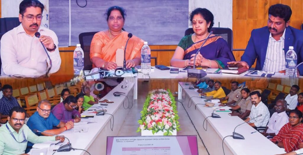 இராமநாதபுரம் மாவட்ட ஆட்சியர் அலுவலக கூட்டரங்கில் குழந்தைகள் நலன்மற்றும் சிறப்பு சேவைகள் துறை மாவட்ட குழந்தைகள் பாதுகாப்பு அலகு சார்பில், தமிழ்நாடு குழந்தை உரிமைகள் பாதுகாப்பு தொடர்பான கூராய்வுக் கூட்டம், தமிழ்நாடு குழந்தை உரிமைகள் பாதுகாப்பு ஆணையத்தலைவர் புதுக்கோட்டை விஜயா தலைமையில் நடைபெற்றது. உடன் மாவட்ட ஆட்சித்தலைவர் சிம்ரன்ஜீத் சிங் காலோன் மற்றும் தமிழ்நாடு குழந்தை உரிமைகள் பாதுகாப்பு ஆணைய உறுப்பினர்கள் முனைவர் வி.உஷாநந்தனி, வி.செல்வேந்திரன் ஆகியோர் உள்ளனர்.