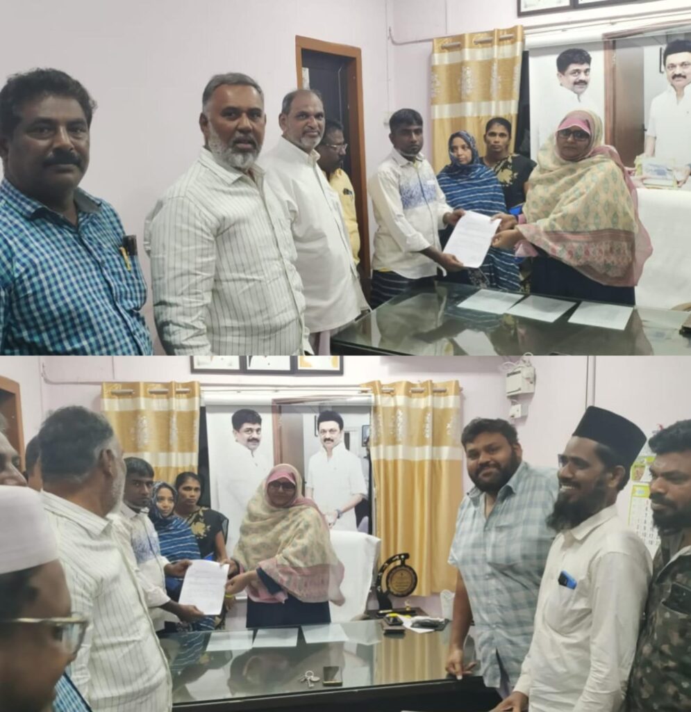 புதுக்கிழக்கு தெரு பொதுநல சங்கம் சார்பில் அதன் நிர்வாகிகள் நகராட்சி நிர்வாகத்திடம் கோரிக்கை மனு அளித்தனர் மனுவில் கீழக்கரை நகராட்சிக்கு உட்பட்ட பட்டாணியப்பா சாலை மிகவும் சிதிலமடைந்து, மழை காலத்தில் மழை நீர் தேங்கிய நிலையில் இருப்பதாலும், பள்ளிக்கூடம் செல்லும் குழந்தைகள், பெண்கள் மற்றும் பொதுமக்கள் மிகவும் சிரமத்திற்கு ஆளாகி வருகின்றனர் எனவும் மேலும், பாதாள சாக்கடையிலிருந்து கழிவு நீர் வெளியேறி நோய் தொற்று ஏற்படும் சூழ்நிலை உருவாகியுள்ளது எனக் கூறியும் இந்த பிரச்சினையை உடனடியாக சரி செய்து தருமாறும் நகர் மன்ற தலைவர் செஹானாஸ் ஆபிதா அவர்களிடம் மனு அளித்தனர் இந்நிகழ்வில் புதுக்கிழக்கு தெரு பொதுநல சங்கத்தின் தலைவர் சீனி, செயலாளர் ஹமீது, பொருளாளர் முஹம்மது ஃபரூஸ் மற்றும் உறுப்பினர்கள் கலந்து கொண்டனர். மேலும், கவுன்சிலர்கள் நவாஸ், சேக் ஹுசைன், சித்திக், சூரியகலா, ஃபைரோஸ் ஆகியோர் உடனிருந்தனர்.