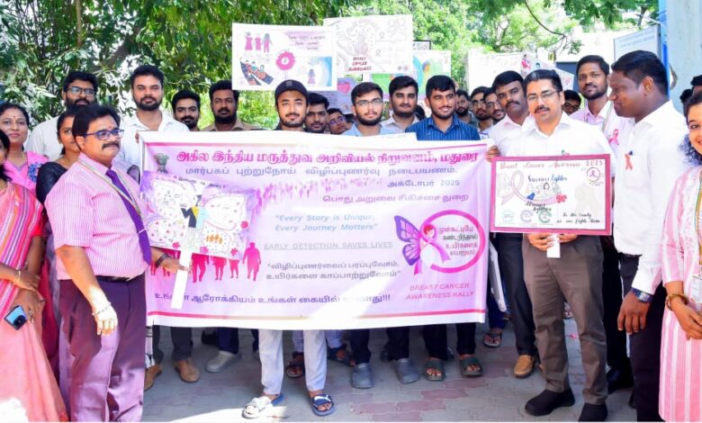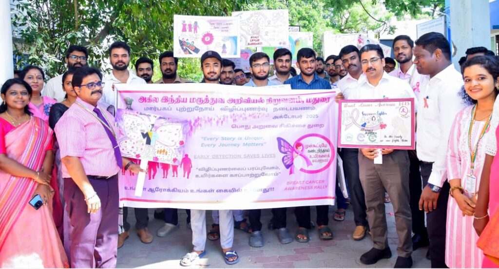 ராமநாதபுரம் மாவட்டம் ராமநாதபுரம் அரசு மருத்துவக் கல்லூரி மருத்துவமனையில் அகில இந்திய மருத்துவ அறிவியல் நிறுவனம் மூலம் மார்பகப் புற்றுநோய் விழிப்புணர்வு பேரணியை மாவட்ட ஆட்சித் தலைவர் சிம்ரன் ஜித் சிங் காலோன் துவக்கி வைத்து பங்கேற்றார்.