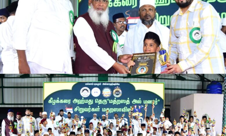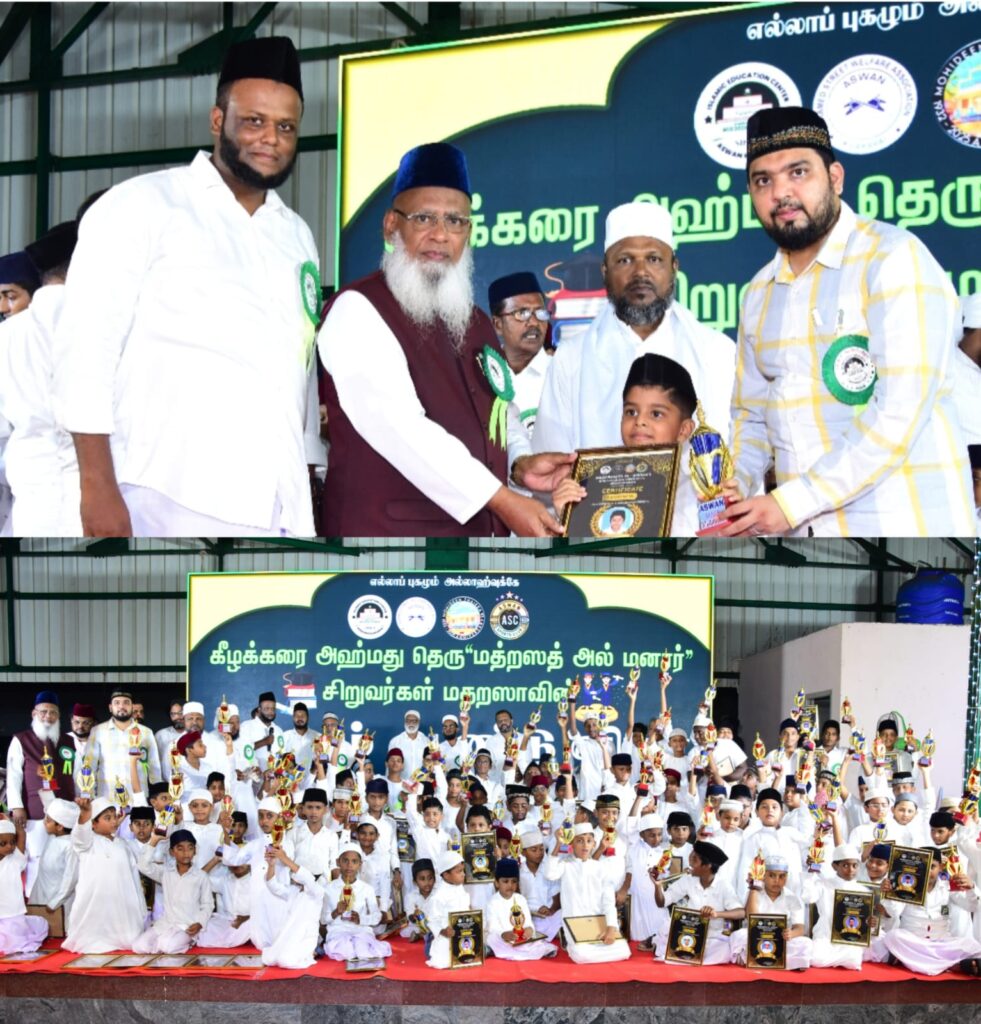 இராமநாதபுரம் மாவட்டம் கீழக்கரை அஹ்மது தெரு“மத்றஸத் அல் மனார்” சிறுவர்கள் மதறஸாவின் 13 ஆம் ஆண்டு விழா மற்றும் பரிசளிப்பு விழா நடைபெற்றது, அனைத்து ஜமாத்தார்களும் கலந்து கொண்டனர், இந்நிகழ்ச்சிக்கு மௌலானா மௌலவி அப்ஸலுல் உலமா ஷைகுல் ஹதீஸ் இராமநாதபுரம் மாவட்டம் அரசு காஜீ அல்ஹாஜ் சலாஹூத்தீன் ஆலிம் ஜமாலி பாஜீல் உமரி அவர்கள் தலைமை வகித்தார்.