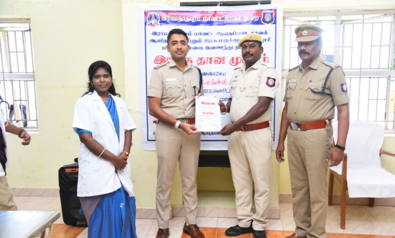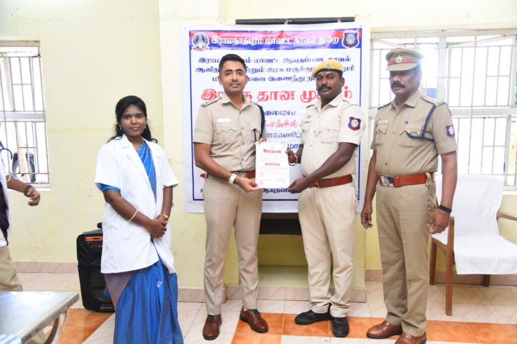 ராமநாதபுரம் மாவட்ட ஆயுதப்படையில் மாவட்ட காவல் கண்காணிப்பாளர் G சந்தீஷ் IPS. தலைமையில் காவல்துறை மற்றும் அரசு மருத்துவக் கல்லூரி மருத்துவமனை இனைந்து இரத்த தான முகாம் நடத்தபட்டது இதில் மாவட்ட ஆயுதப்படை துணை காவல் கண்காணிப்பாளர் முத்துராமலிங்கம் மற்றும் காவலர்கள் கலந்து கொண்டு இரத்த தானம் செய்தனர் மேலும் இதுவரை 12 முறைகள் இரத்த தானம் வழங்கிய ஆயுதப்படை காவலர் சரவணபாண்டியன் நற்செயலை பாராட்டும் வகையில் அவருக்கு சான்றிதழ் வழங்கப்பட்டது