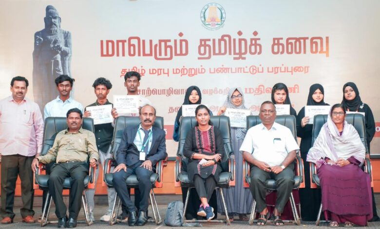 ராமநாதபுரம் மாவட்டம் கீழக்கரை முகமது சதக் பொறியியல் கல்லூரியில் மாபெரும் தமிழக் கனவு என்னும் கருத்தரங்கம் நிகழ்ச்சியில் சொற்பொழிவாளர் வழக்கறிஞர் மதிவதனி கருத்தாளர்களின் கேள்விகளுக்கு சிறந்த முறையில் பதில் அளித்த மாணவ மாணவிகளுக்கு பரிசு மற்றும் பாராட்டு சான்றிதழ் வழங்கினார். உடன் மாவட்ட வருவாய் அலுவலர் சங்கரநாராயணன் உள்ளார்.
