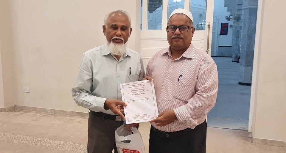 இதனை ஈமான் அமைப்பின் தலைவர் அல்ஹாஜ் பி.எஸ்.எம். ஹபிபுல்லா கான், துணைத் தலைவர் கமால், தொழிலதிபர்கள் ஆபித் ஜுனைத், முஹிப்புல் உலமா ஏ. முஹம்மது மஃரூப், அதிரை ஷேக் தாவூத் ஆலிம், இலங்கை மௌலவி நிஸ்தர் ஆலிம், ஊடகவியலாளர் முதுவை ஹிதாயத் உள்ளிட்டோர் பெற்றுக் கொண்டனர்.