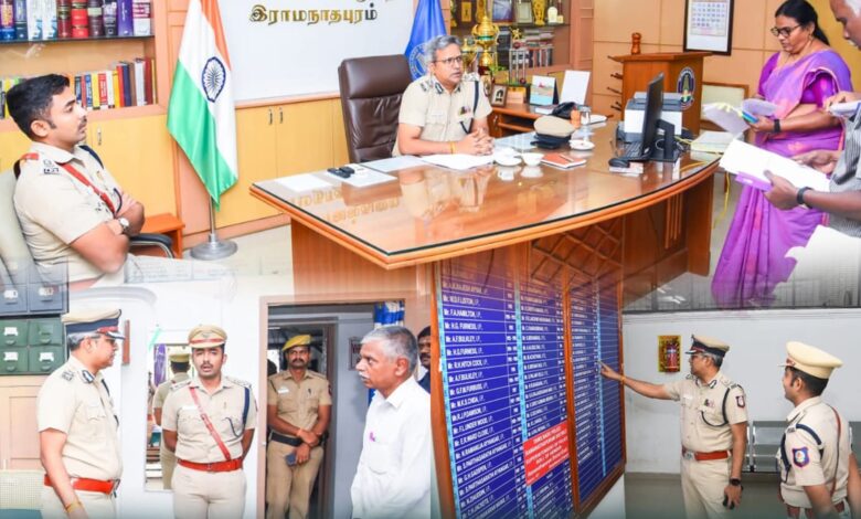 இராமநாதபுரம் மாவட்ட காவல் அலுவலகத்தில் அமைந்துள்ள தனிப்பிரிவு, மாவட்ட குற்ற ஆவண காப்பகம், மாவட்ட குற்ற பிரிவுகள், Finger Print Cell, MFSL மற்றும் மாவட்ட ஆயுதப்படை உள்ளிட்ட பிரிவுகளுக்கு தென் மண்டல காவல்துறை தலைவர் பிரேம் ஆனந்த் சின்ஹா,இ.கா.ப. நேரில் சென்று ஆய்வு மேற்கொண்டார்.