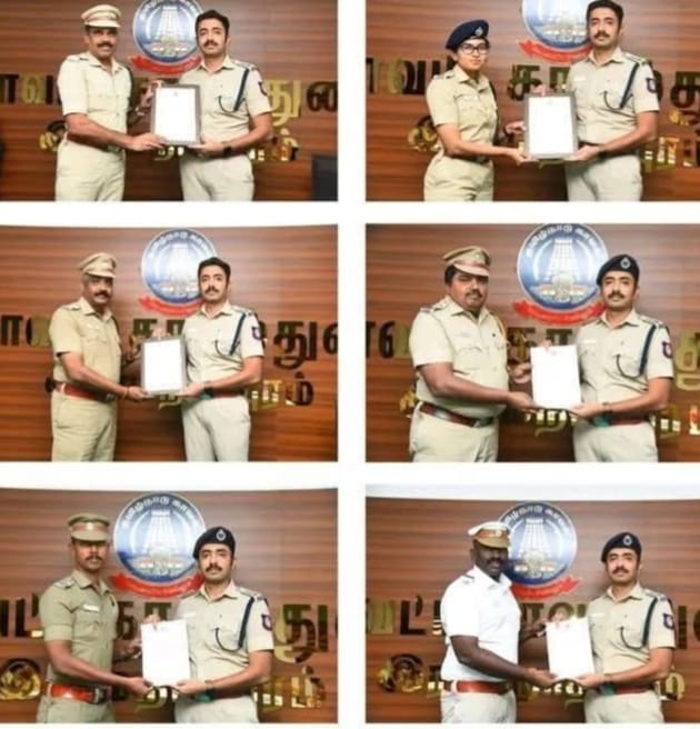 இராமநாதபுரம் மாவட்டம் பசும்பொன்னில் நடைபெற்ற முத்துராமலிங்கத் தேவர் ஜெயந்தி விழா பாதுகாப்பு பணியில் சிறப்பாக பணிபுரிந்த காவல்துறை அதிகாரிகளுக்கு மாவட்ட காவல் கண்காணிப்பாளர் திரு.G.சந்தீஷ்.IPS., பாராட்டுச்சான்றிதழ் வழங்கினார்கள்.