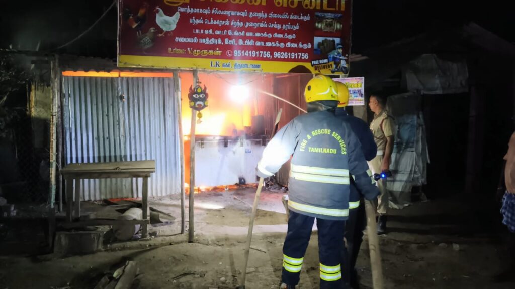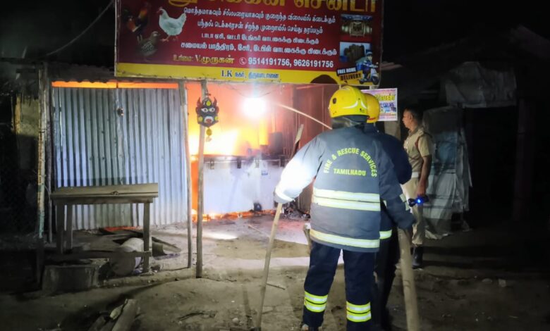 இரவு ஏழு மணி அளவில் கடையை அடைத்து சென்றபோது சிறிது நேரத்தில் கடை திடீரென தீப்பற்றி எரிய தொடங்கியது உள்ளே முழு சிலிண்டர்கள் இருந்ததால் அக்கம்பக்கத்தினர் அதிர்ச்சி அடைந்து திருவாடனை தீயணைப்பு நிலையத்தில் தகவல் கொடுத்தனர்.