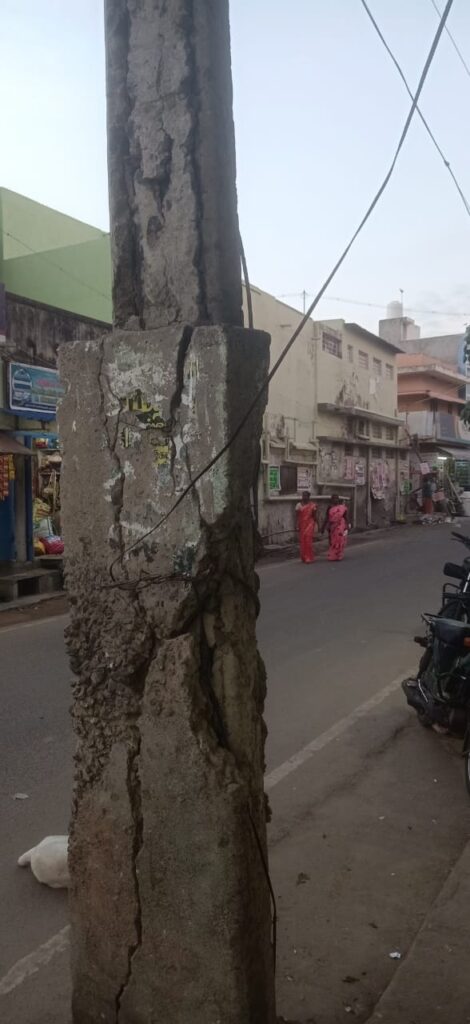 மின் கம்பம் சேதம் : சரி செய்ய கோரிக்கை