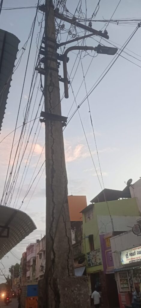 ராமநாதபுரம் மாவட்டம் கமுதியில் சாயல்குடி செல்லும் மெயின்சாலையின் மீது அமைந்துள்ள மின்கம்பம் உடைந்துபோய் எந்தநேரம் விழுவோம் அபாயம் உள்ளது இந்த மின்கம்பம் எதிரே RC சர்ச் RC நடுநிலைப்பள்ளி உள்ளது, ஆகையால் பொதுமக்கள் நலன்கருதியும் பள்ளிகுழந்தைகள் நலன்கருதியும் மாற்றிதர கோரி மின்வாரியத்திற்கு கோரிக்கை வைத்தனர் ஆனால் இன்னும் மாற்றவில்லை விபரீதம் ஏற்படும் முன் மின்கம்பம் மாற்றிதர மாவட்டநிர்வாகம் உடனடியாக நடவடிக்கை எடுக்கவேண்டும் என இந்த பகுதி பொதுமக்கள் கோரிக்கை விடுத்துள்ளனர்,