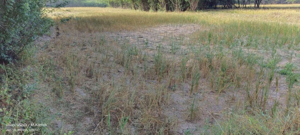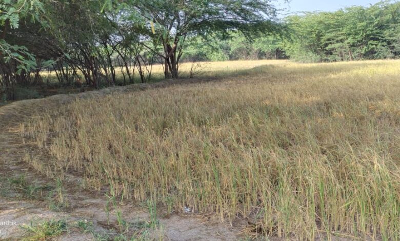 ராமநாதபுரம் மாவட்டம் கமுதி தாலுகா உட்பட்ட கோவிலாங்குளம் ,குண்டுகுளம், வண்ணாங்குளம், கே.வேப்பங்குளம் , சீமானேந்தல், அரிசிகுழுதான்,முதல்நாடு, முஸ்டக்குறிஞ்சி, செந்தனேந்தல், பாப்பாங்குளம், பம்மனேந்தல், சாத்தூர்நாயக்கன்பட்டி, ஆகிய கிராமங்களில் போதிய பருவமழையின்றி நெற்பயிகள் வயல்களில் அறுவடை செய்யமுடியாமல் கருகிபோய்விட்டது இதனால் பத்தாயிரம் ஏக்கர் பரப்பளவில் விவசாயம் செய்த விவசாயிகள் வேதனை அடைந்து உள்ளார்கள் இதுகுறித்து குண்டுகுளம் விவசாயி காளியம்மாள் வயது (55) கூறுகையில் ஒவ்வொரு ஆண்டும் விவசாயத்திற்காக பல ஏக்கர் அளவில் விவசாயம் செய்து வருகின்றோம் பருவத்தில் பெய்ய வேண்டிய மழையும் பெய்யாதநிலையில் ,கமுதி,கடலாடி, முதுகுளத்தூர் ஆகிய பகுதிகளுக்கு வைகையிலிருந்து வரக்கூடிய தண்ணீர் கிடைக்காத சூழ்நிலையில் தொடர்ந்து பல ஆண்டுகளாக நாங்கள் விவசாயம் செய்தும் அறுவடை செய்ய முடியாமல் வயக்காட்டிலே நெற்பயிர்கள் கருகிப் போய் விடுகிறது அதிகளவில் பணம் செலவழித்தும், களைஎடுத்தல், உரம் இடுதல், பல லட்சம் ரூபாய் செலவு செய்து பயனலிக்கவில்லை இது குறித்து மாவட்ட அதிகாரிகளுக்கும், வேளாண்மை துறை அதிகாரிகளுக்கும் பலமுறை மனு கொடுத்தும் இந்த மூன்று தாலுகாவினுடைய விவசாயினுடைய பிரச்சனையை இதுவரை அரசு செவிசாய்க்கவில்லை இனிவரும் காலங்களில் இது போன்ற நிலை இல்லாமல் இராமநாதபுரம் மாவட்டத்தில் கமுதி, கடலாடி, முதுகுளத்தூர் தாலுகா விவசாயிகளும் பயன்பெறும் வகையில் வைகையில் இருந்து வரக்கூடிய தண்ணீரை பார்த்திபனூர் மதகுகள் வழியாக திறக்க வேண்டும் எனவும் இந்த ஆண்டு பருவமழையின்றி கருகிப்போன நெற்ப்பயிர்களுக்கு அரசு பேரிடர் கால நிவாரண நிதியாக ஏக்கருக்கு 50 ஆயிரம் ரூபாய், பயிர் காப்பீடு இன்சூரன்ஸ் தொகையை உடனடியாக வழங்க வேண்டும் என தமிழக அரசுக்கு கோரிக்கை வைக்கின்றோம்.