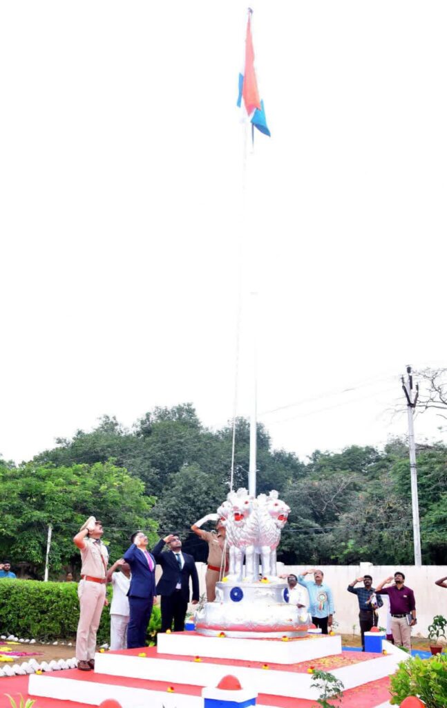 இராமநாதபுரம் மாவட்ட ஆயுதப்படை மைதானத்தில் இன்று (26.01.2026), 77 ஆவது குடியரசு தின விழாவையொட்டி, மாவட்ட ஆட்சித்தலைவர் திரு.சிம்ரன்ஜீத் சிங் காலோன்,இ.ஆ.ப., அவர்கள் தேசிய கொடியினை ஏற்றி வைத்து மரியாதை செலுத்தினார். உடன் மாவட்ட காவல் கண்காணிப்பாளர் திரு.ஜி.சந்தீஷ்.இ.கா.ப., அவர்கள் உள்ளார்.