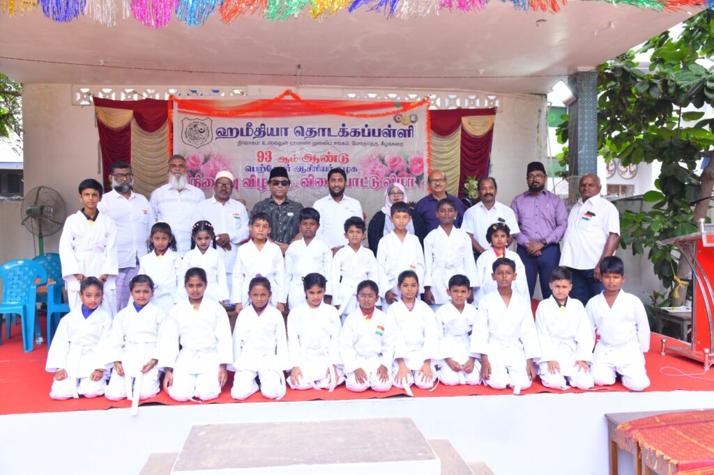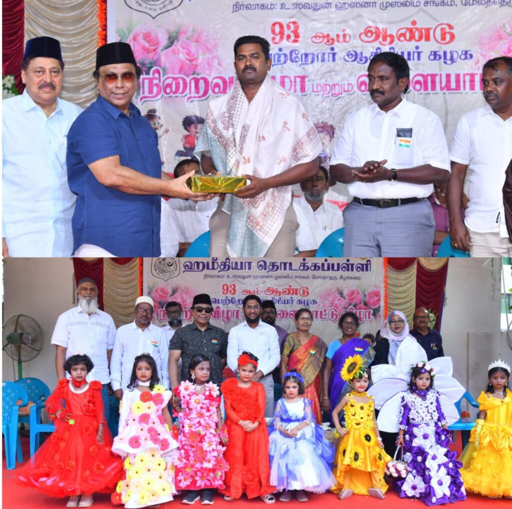 உஸ்வத்துன் ஹஸனா முஸ்லிம் சங்க நிர்வாகத்தின் கீழ் இயங்கும் ஹமீதியா தொடக்கப்பள்ளியில் 93 ஆம் ஆண்டு விளையாட்டு விழா மற்றும் ஆண்டு விழா பள்ளி வளாகத்தில் சிறப்பாக நடைபெற்றது. உஸ்வதுன் ஹஸனா முஸ்லிம் சங்கத்தின் தலைவர் முஜிப் ரஹ்மான் மற்றும் உஸ்வத்துன் ஹஸனா முஸ்லிம் சங்க நிர்வாகிகள் முன்னிலை வகித்தனர்,பள்ளி தாளாளர் சிராஜுதீன் தலைமை வகித்தார்,ஹமீதியா தொடக்கப்பள்ளி தலைமை ஆசிரியர் ஹமீது நிசா வரவேற்புரை நிகழ்த்தினார்,விளையாட்டு விழாவில் சிறப்பு அழைப்பாளராக அல்பய்யினா மெட்ரிக் மேல்நிலைப்பள்ளி தாளாளர் ஜாஃபிர் சுலைமான் கலந்து கொண்டார், வட்டார கல்வி பயிற்சி பள்ளி முதல்வர் வெள்ளத்துரை மஞ்சூர், காவல் ஆய்வாளர் பத்மநாபன் ஆகியோர் ஆண்டுவிழா சிறப்பு விருந்தினராக கலந்து கொண்டனர், பேராசிரியர் பிரபாகர், வட்டாரக் கல்வி அலுவலர் தேன் மொழி,வட்டார கல்வி அலுவலர் மல்லிகா, வட்டார வளமைய மேற்பார்வையாளர், (பொறுப்பு), சேதுபதி வாழ்த்துரை வழங்கினார்கள், இந்நிகழ்வில் பள்ளி மாணவ,மாணவிகளின் வண்ணமிகு அணிவகுப்பு விளையாட்டுப் போட்டி மற்றும் கலை நிகழ்ச்சி, குறிப்பாக ராம்ப் வாக், கராத்தே, சிலம்பம், ஆகியவை மாணவ மாணவிகள் நிகழ்த்தி காட்டினார், இதில் ஆசிரியர்கள்,மாணவ, மாணவியர்கள், கலந்து கொண்டு சிறப்பித்தனர்.