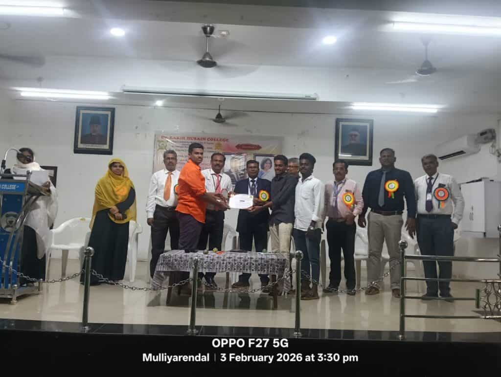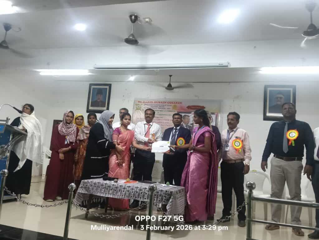 சிவகங்கை மாவட்டம், இளையான்குடி, டாக்டர் சாகிர் உசேன் கல்லூரி முதுகலை மற்றும் ஆராய்ச்சி வணிகவியல் துறை மற்றும் கல்லூரி உள் தர உறுதி செல் இணைந்து 03.01.2026 அன்று “சர்வதேச வணிக சந்தையில் செயற்கை தொழில்நுட்பம் மற்றும் சந்தை நிலைத்தன்மை” குறித்த கருத்தரங்கு நடைபெற்றது. துறைத்தலைவர் நாசர் வரவேற்றார். கல்லூரி முதல்வர் ஜபருல்லாகான் கருத்தரங்கை துவக்கி வைத்து சிறப்புரையாற்றினார். சீனா, குவாங்க்சி மின்சு பல்கலைக்கழகம், சினோ-பிரிட்டிஷ் கல்லூரி, கணக்கியல் மற்றும் நிதித்துறை, பேராசிரியர் சோணை சிங்காரம் ஜெயராஜ் கலந்துகொண்டு சிறப்புரையாற்றினார். பிற்பகல் நடைபெற்ற நிகழ்வில் உதவிப்பேராசிரியர் நசீர் கான் சிறப்பு விருந்தினரை அறிமுகம் செய்து வரவேற்றார். சிக்கிம், மணிப்பால் தொழில்நுட்ப கல்லூரி, கணிதவியல் மற்றும் புள்ளியில் துறை, இணைப்பேராசிரியர் பிரியங்கா தார் அவர்கள் இணையவழியில் பங்கேற்று பேசினார். ஆராய்ச்சி மாணவர்கள் ஆராய்ச்சி கட்டுரைகளை சமர்ப்பித்தனர். இறுதியாக கருத்தரங்க ஒருங்கிணைப்பாளர், உதவிப்பேராசிரியர் பௌசியா சுல்தானா நன்றி கூறினார்.