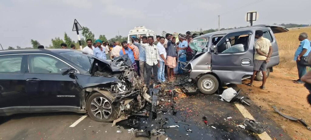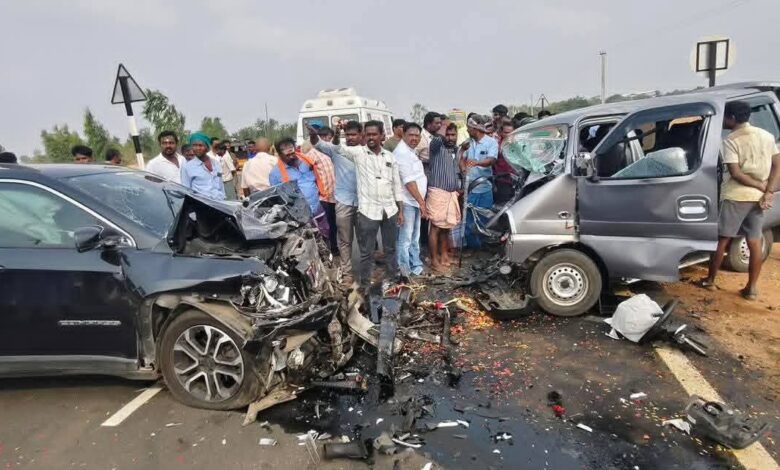கமுதி அருகே இரண்டு கார்கள் நேருக்கு நேர் மோதிக்கொண்ட பயங்கர விபத்தில், ஒரே குடும்பத்தைச் சேர்ந்த தந்தை, தாய் மற்றும் மகன் என 3 பேர் பரிதாபமாக உயிரிழந்தனர்.