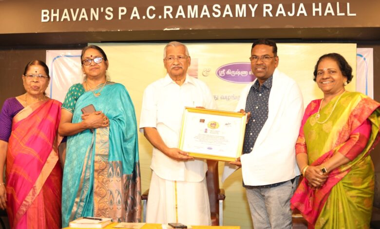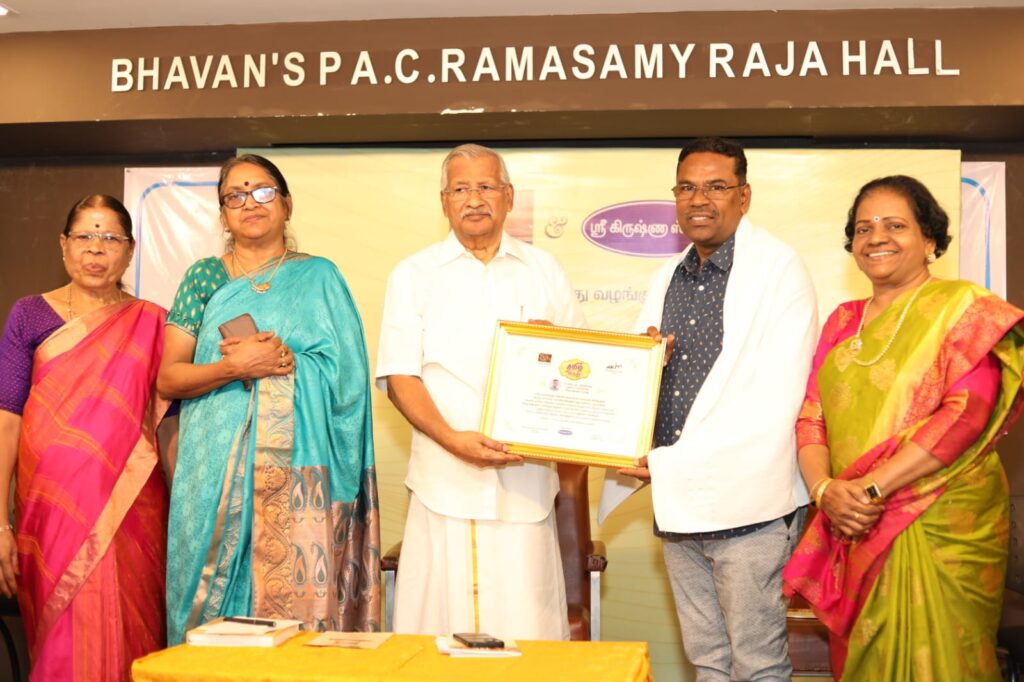 விழாவில் கடந்த 35 ஆண்டுகளுக்கும் மேலாக கவிதை, ஹைக்கூ, சிறுவர் இலக்கியம், கட்டுரை, சிறுகதை என பல்வேறு வகைகளிலும் தொடர்ந்து எழுதிவரும் கவிஞர் மு.முருகேஷின் இலக்கியப் பங்களிப்பைப் பாராட்டிக் கவுரவிக்கும் வகையில் நீதியரசர் ஜெகதீசன், கவிஞர் மு.முருகேஷூக்கு ‘தமிழ் விருதினை’ வழங்கிச் சிறப்பித்தார்.