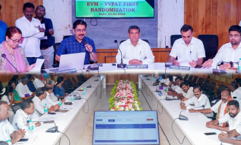 இராமநாதபுரம் மாவட்ட ஆட்சியர் அலுவலக கூட்டரங்கில் தேர்தல் பார்வையாளர்கள் (பொது) டாக்டர் மணிஷ் ரஞ்சன் (திருவாடானை), ஓம் பிரகாஷ் (இராமநாதபுரம்) , ரெஹனா பதூல் (பரமக்குடி -தனி) மற்றும் மாவட்ட தேர்தல் அலுவலர் / மாவட்ட ஆட்சித்தலைவர் சிம்ரன்ஜீத் சிங் காலோன், ஆகியோர் தலைமையில், அங்கீகரிக்கப்பட்ட அரசியல் கட்சி பிரமுகர்கள் முன்னிலையில், எதிர்வரும் தமிழ்நாடு சட்டமன்ற பொதுத் தேர்தல் 2026 -இல் பயன்படுத்தப்பட உள்ள வாக்கு இயந்திரங்கள் (EVMs) மற்றும் வாக்காளர் சரிபார்ப்பு அச்சு இயந்திரங்களின் (VVPATs) First Randomization) முதல்நிலை தேர்வுப்பணிகள் நடைபெற்றது. உடன் மாவட்ட வருவாய் அலுவலர் வ.சங்கரநாராயணன் அவர்கள், கூடுதல் ஆட்சியர் (வளர்ச்சி) திவ்யான்ஷீநிகம், ஆகியோர் உள்ளனர்.