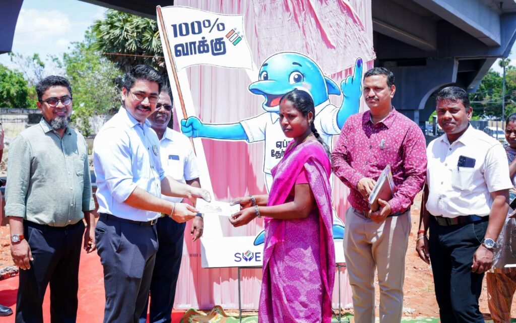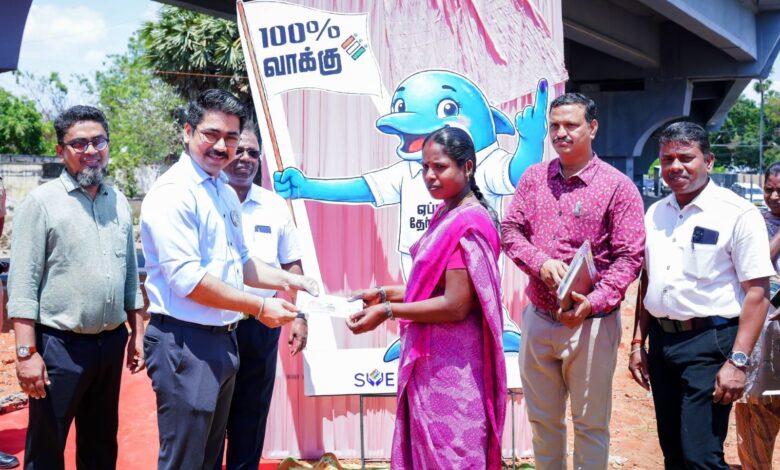 தமிழ்நாடு சட்டமன்ற பொது தேர்தல் 2026-ஜ முன்னிட்டு ராமநாதபுரம் மாவட்டம் ராமநாதபுரம் பழைய பேருந்து நிலையம். (ரவுண்டானா) அருகில் மாவட்ட தேர்தல் அலுவலர்/ மாவட்ட ஆட்சித் தலைவர் சிம்ரன் ஜீத் சிங் காலோன் வாக்காளர்களிடையே 100% சதவீதம் வாக்குப்பதிவை வலியுறுத்தும் விதமாக ராமநாதபுரம் மாவட்டத்திற்கான தேர்தல் விழிப்புணர்வு இலச்சினை திறந்து வைத்து பொதுமக்கள் மற்றும் மகளிர் சுய உதவி குழுவினருக்கு வாக்காளர் விழிப்புணர்வு குறித்த துண்டு பிரசுரங்களை வழங்கினார். உடன் மாவட்ட வருவாய் அலுவலர் சங்கர நாராயணன் உள்ளார்.
